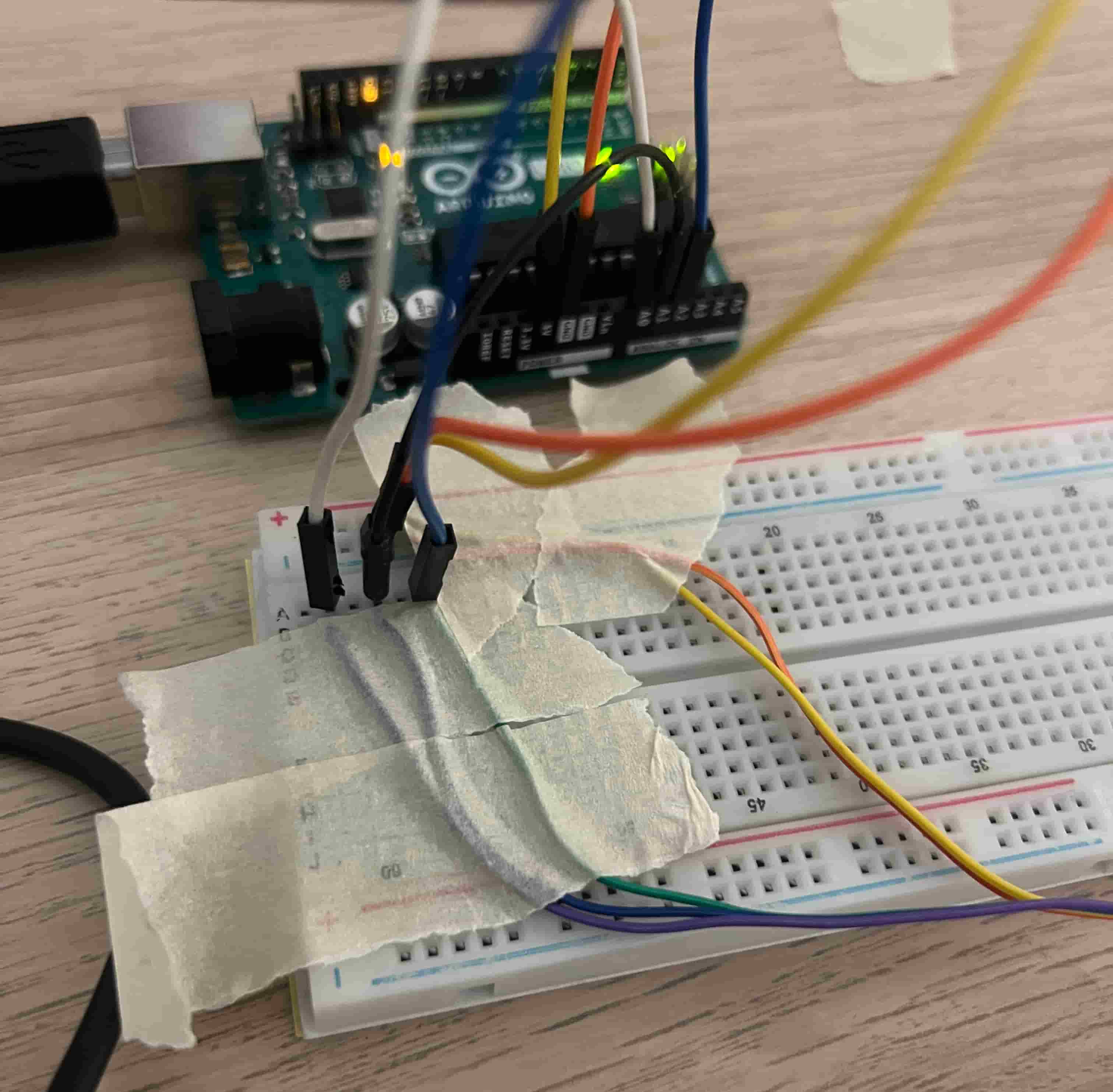 Another problem that occured was that because the accelometer was solder to the wires, its very fragile. I had to tape the wires to the breadboard so it doesn't disattached easily. This made the movements I captured somehow restrained because I kept worrying about whether the arduino getting disconnected during the data collection.