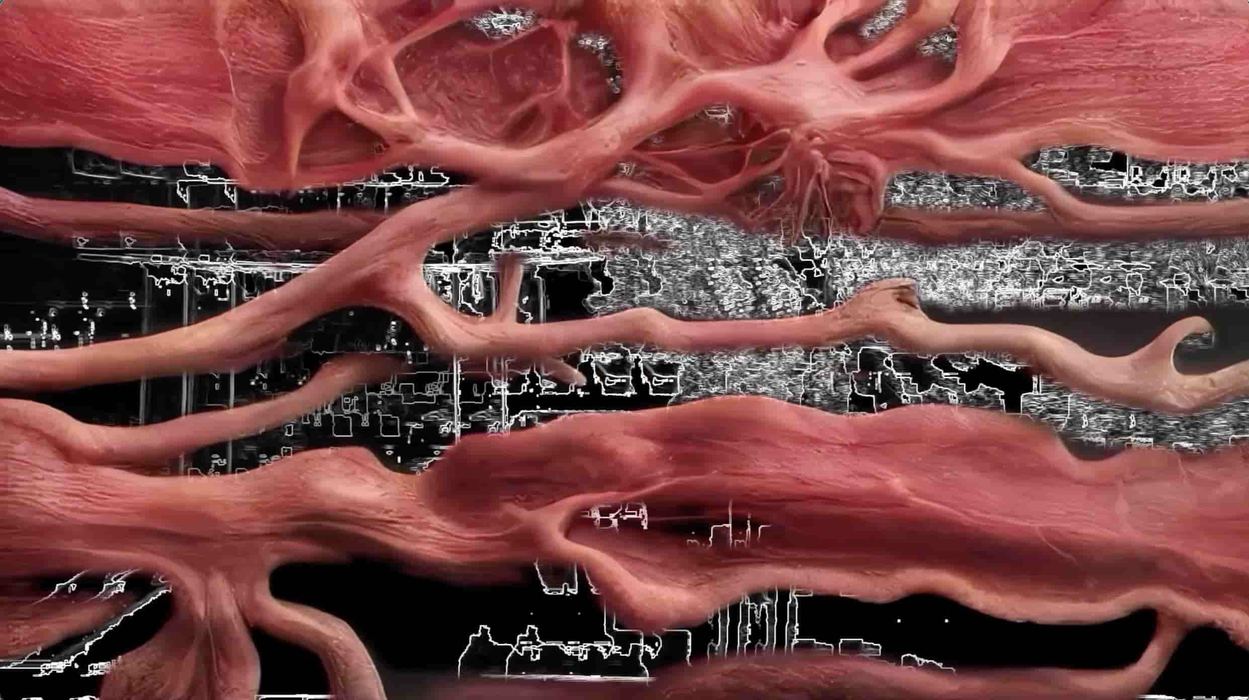 I got reminded of a video art by Karyn Nakamura which she tries to experiment with a range of AI image generation tools, using an artificial muscle that she generated as her narrative of these muscles stitiching the frames together. She uses TouchDesigner and other frame interpolation tools like ComfyUI to interpolate her videos together.