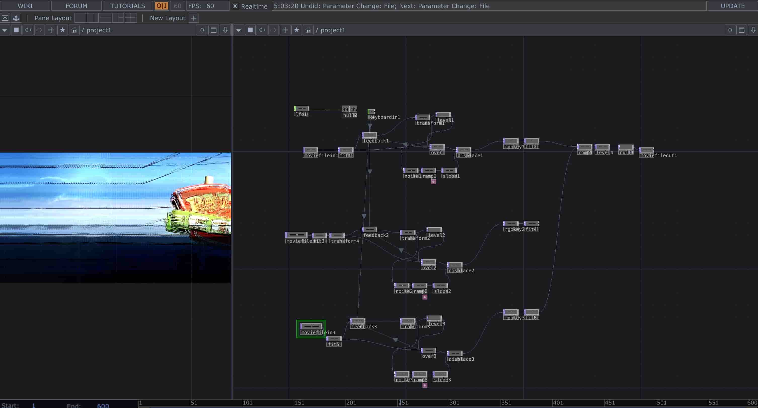 I found this quite interesting as it doesn't only overlay these 2 different images together, but the transform operator with the feedback loops kinda blend the image together, making a new images that creates somehow like a new scenery.