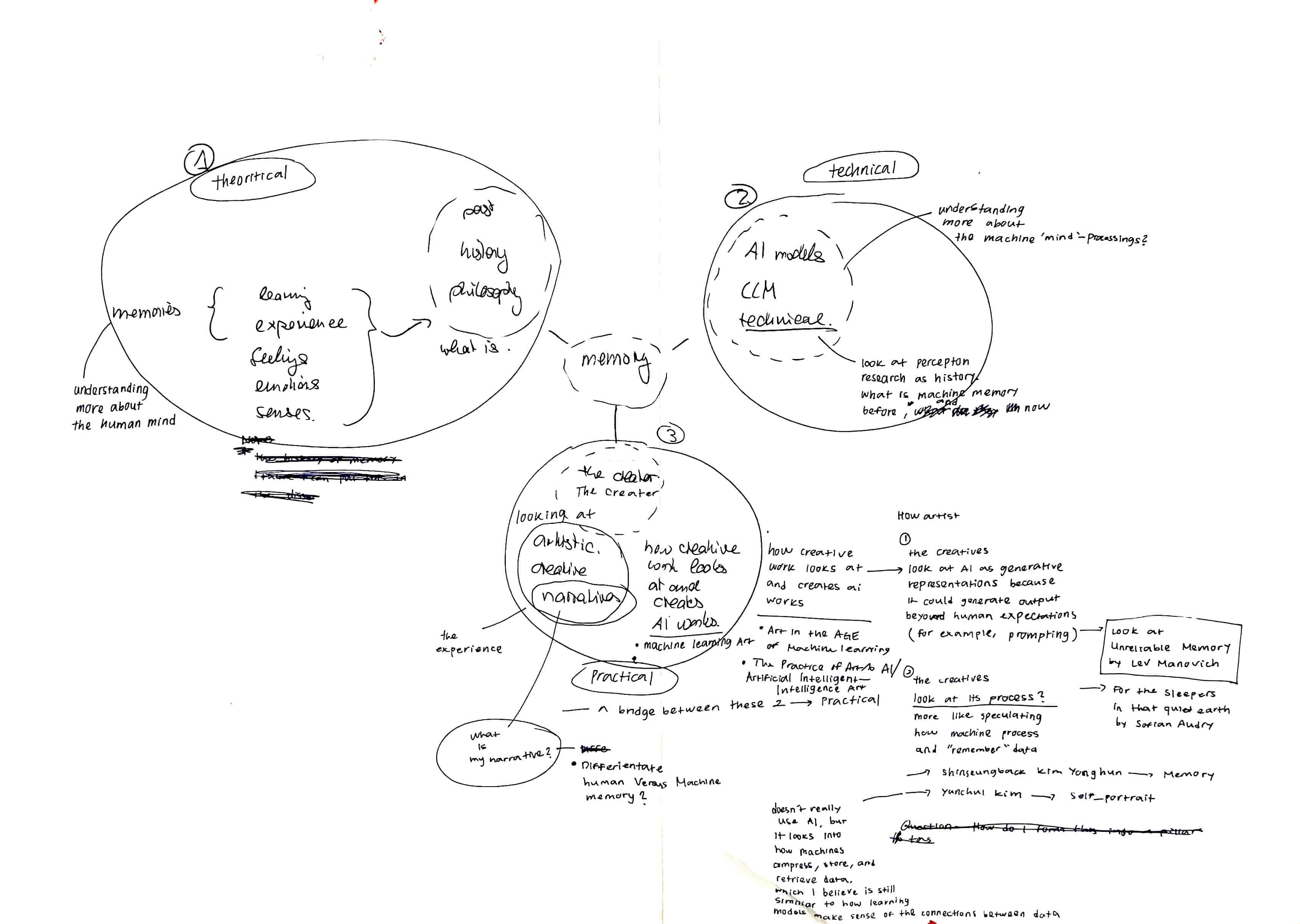 After some reading, I've decided to base my three pillars on three aspects: theoretical, technical, and practical. These aspects will help me better understand what memory means for humans (theoretical) and what machine memory is (technical) to create a comparison between human and machine memory. The third pillar will focus on how creatives use and look at these machines for artistic expression, connecting back to my research practice. Overall, these three pillars will serve as a foundation to connect and synthesize my readings.