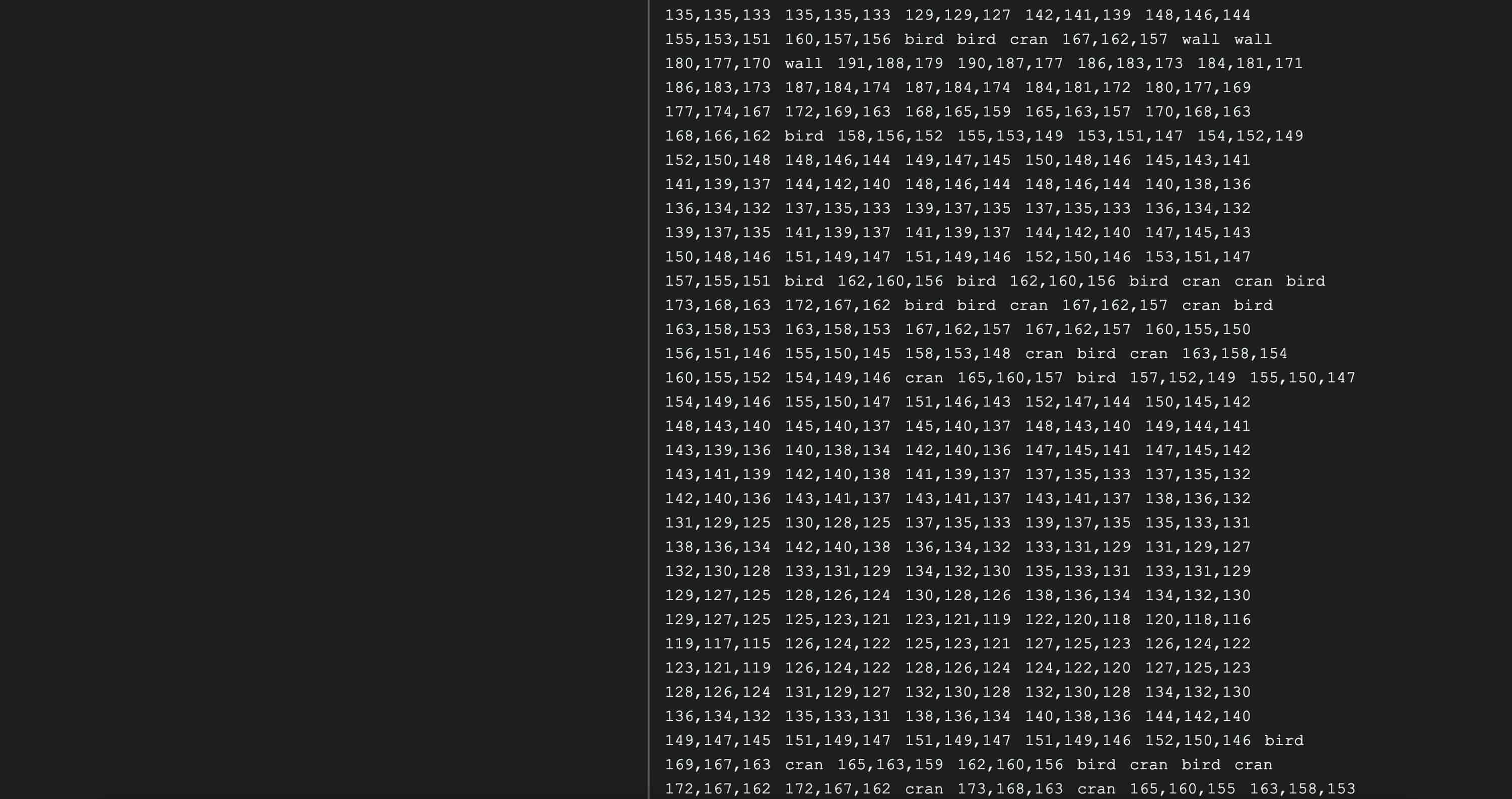 After getting the RGB values, I fed them into ChatGPT to see if it could interpret the data and visualize the original image. I was surprised that it managed to recreate the entire image using just the numbers I provided. This led me to try an additional experiment where I incorporated words by converting the values to ASCII characters. If a word matched an RGB value, it replaced the number with the corresponding word.