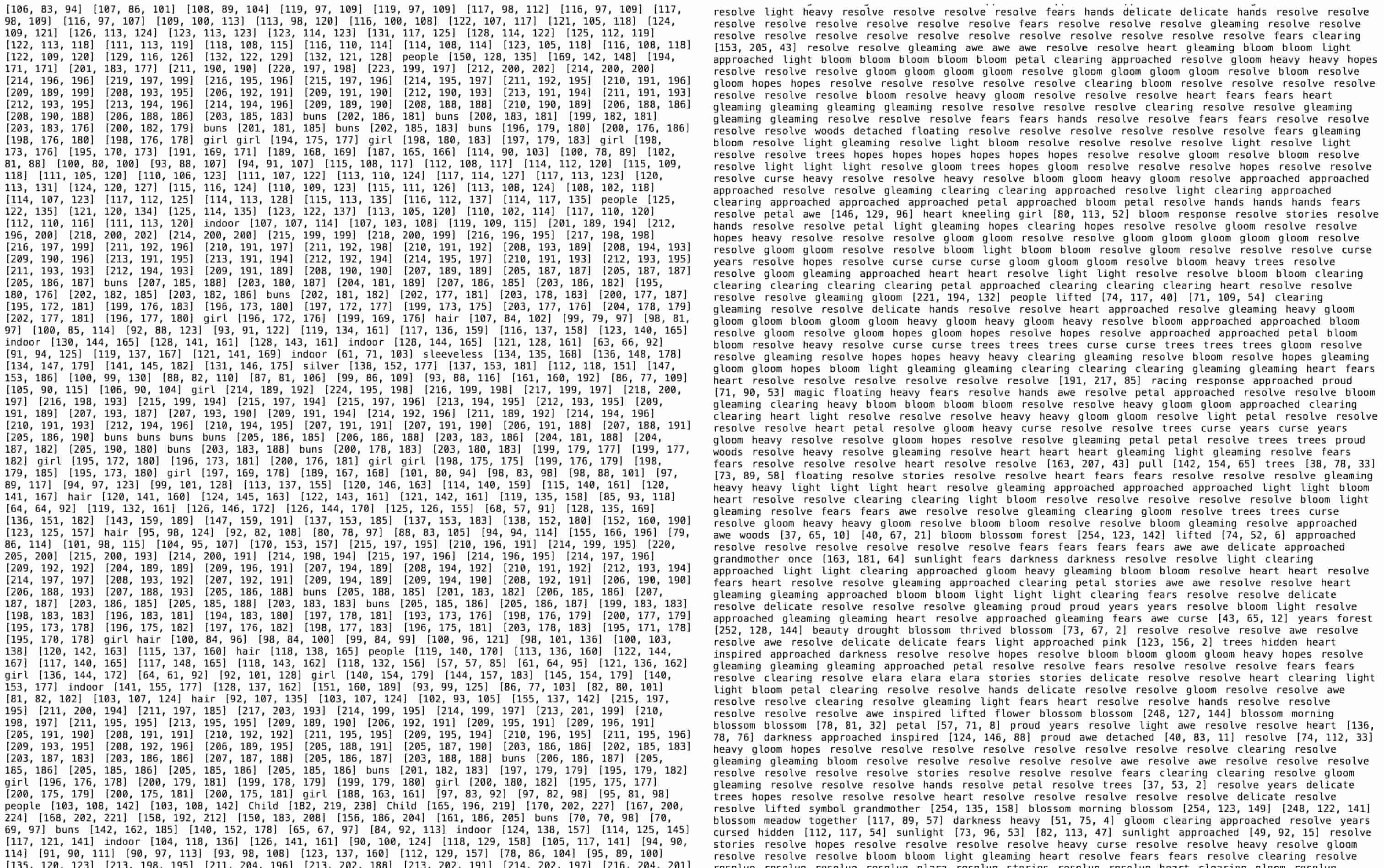 In a further experiment, I also tried matching these numbers with words derived from ASCII character values. The resulting output became more poetic, combining numbers with descriptive words that hint at the images.