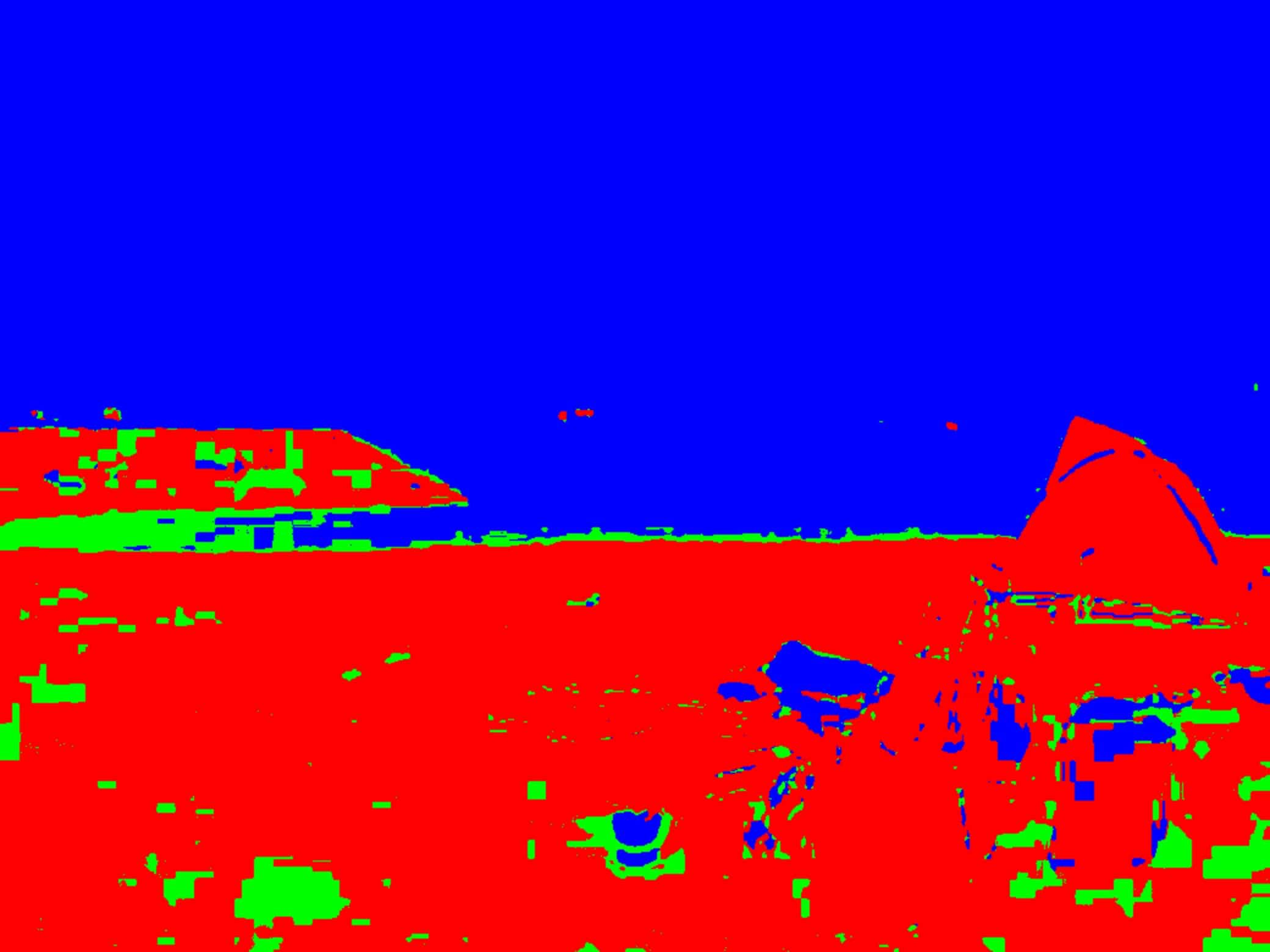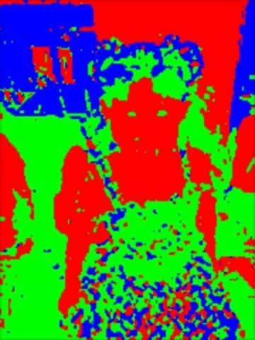 If a machine interprets an image as clusters of color rather than distinct objects, could it actually "see" finer details than humans? While we might not recognize the segmented image without seeing its original image, a machine might have a better chance of identifying elements like objects and scenery based on colors alone.