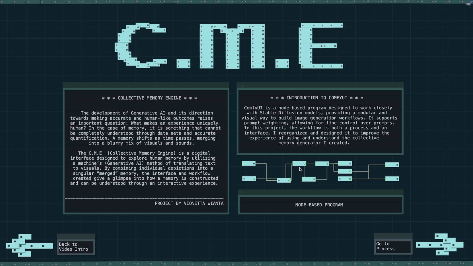 Well, this would be my challenge to make it accessible and understandable for the viewers to navigate. I could make use of the materials I have and transform them into something visual, such as using the node boxes as vectors and the default colors to make contrast between each canvas.