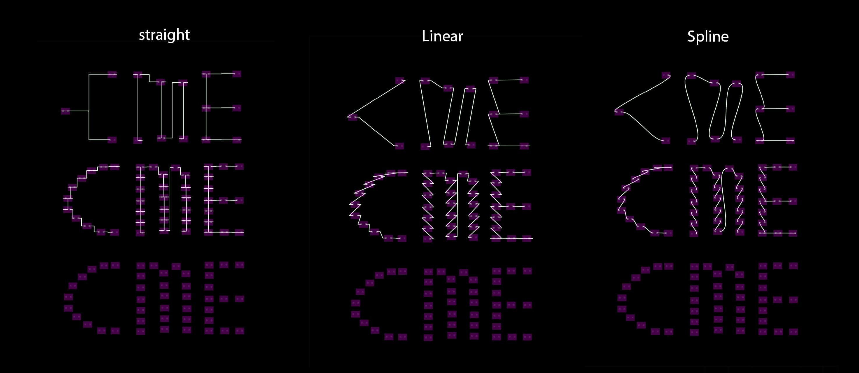 I can also adjust the lite graphs shapes (wires) into straight, linear and spline shapes. I tried to create types by connecting the wires into the boxes, writing the letters “C.M.E.” After further tweaking and playing around I decided to go with just using the text boxes without the lite graph to create the types for my interface.