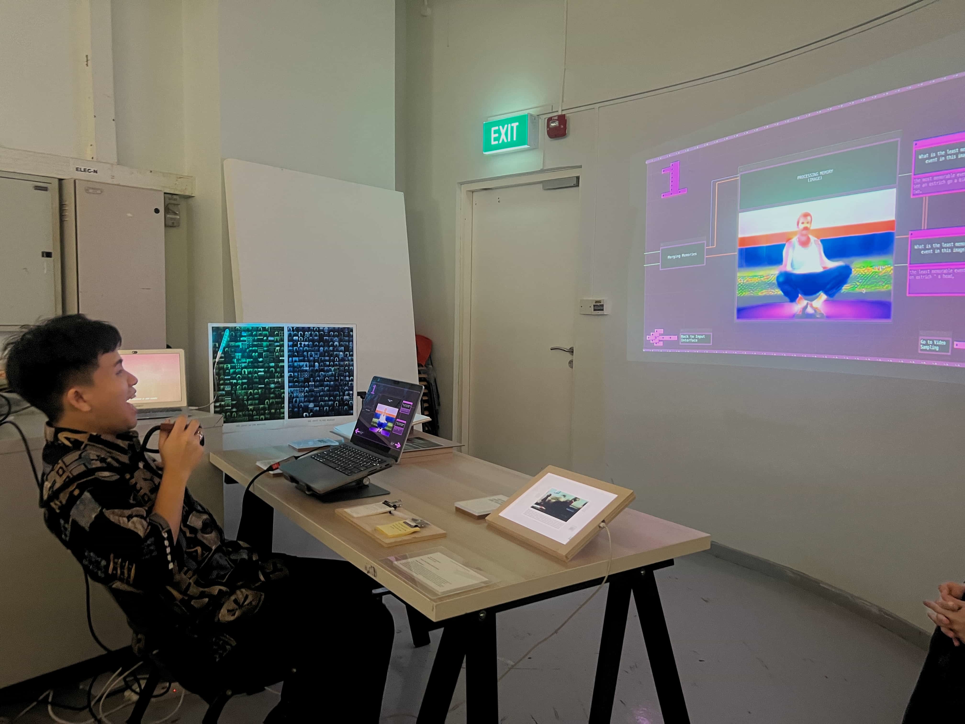 Although the works are complete, there were certain things that I wished it could have been better due to the space that I occupied. However, these things are beyond my control, such as the narrow space, little light, and the concave wall where the projector screen was on.