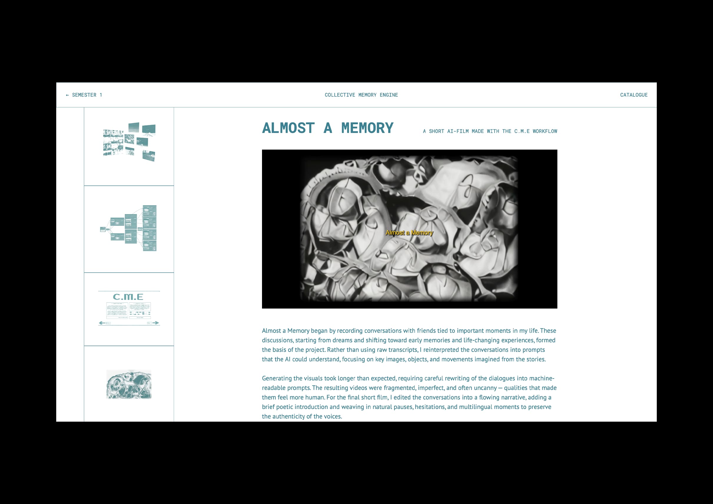 I also spent time refining my website for the Catalogue of Making, adjusting the layout from the previous semester. It needed to visually match the style of my CPJ, prints, and video works, so that everything would feel more cohesive when presented together.