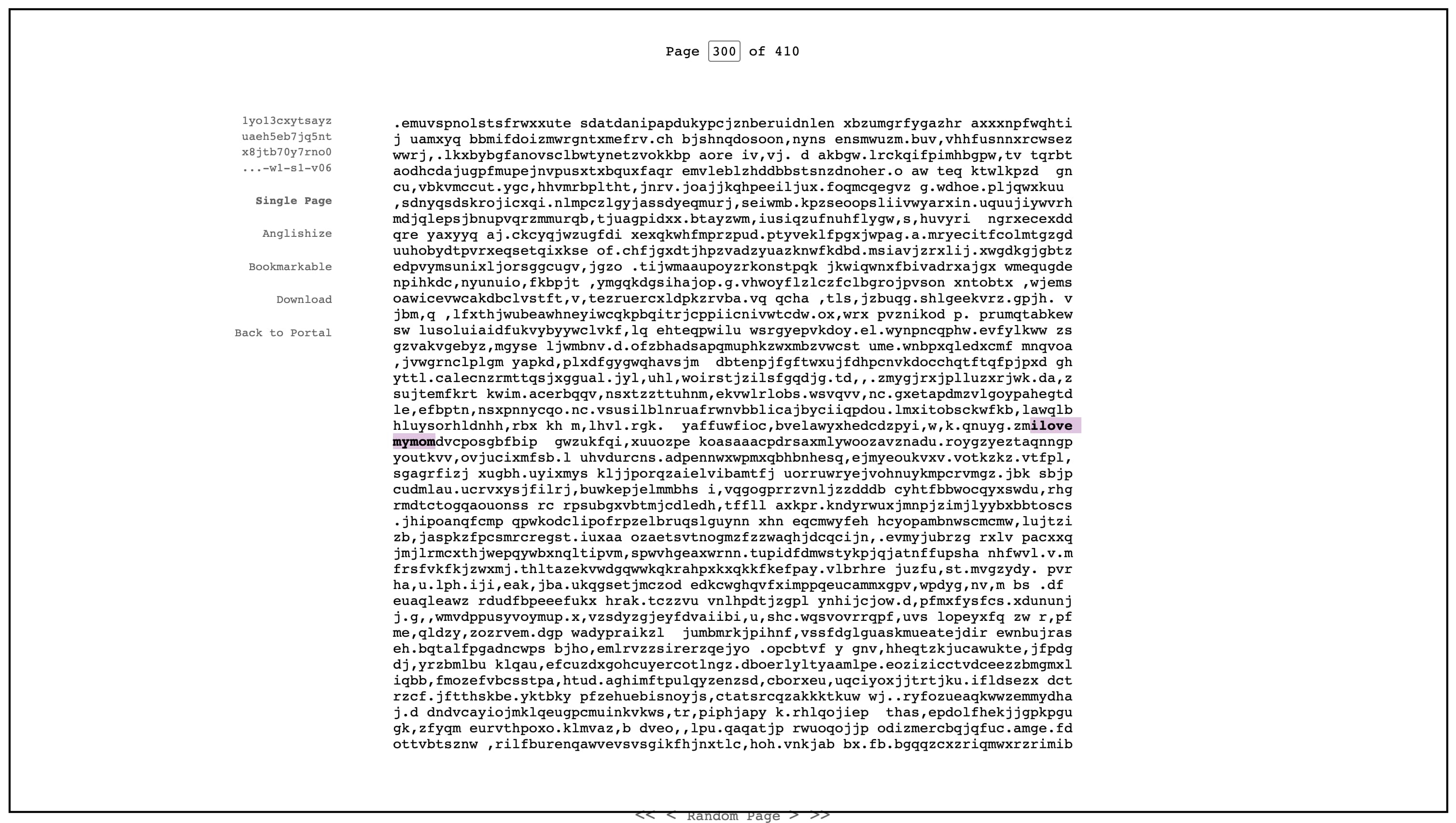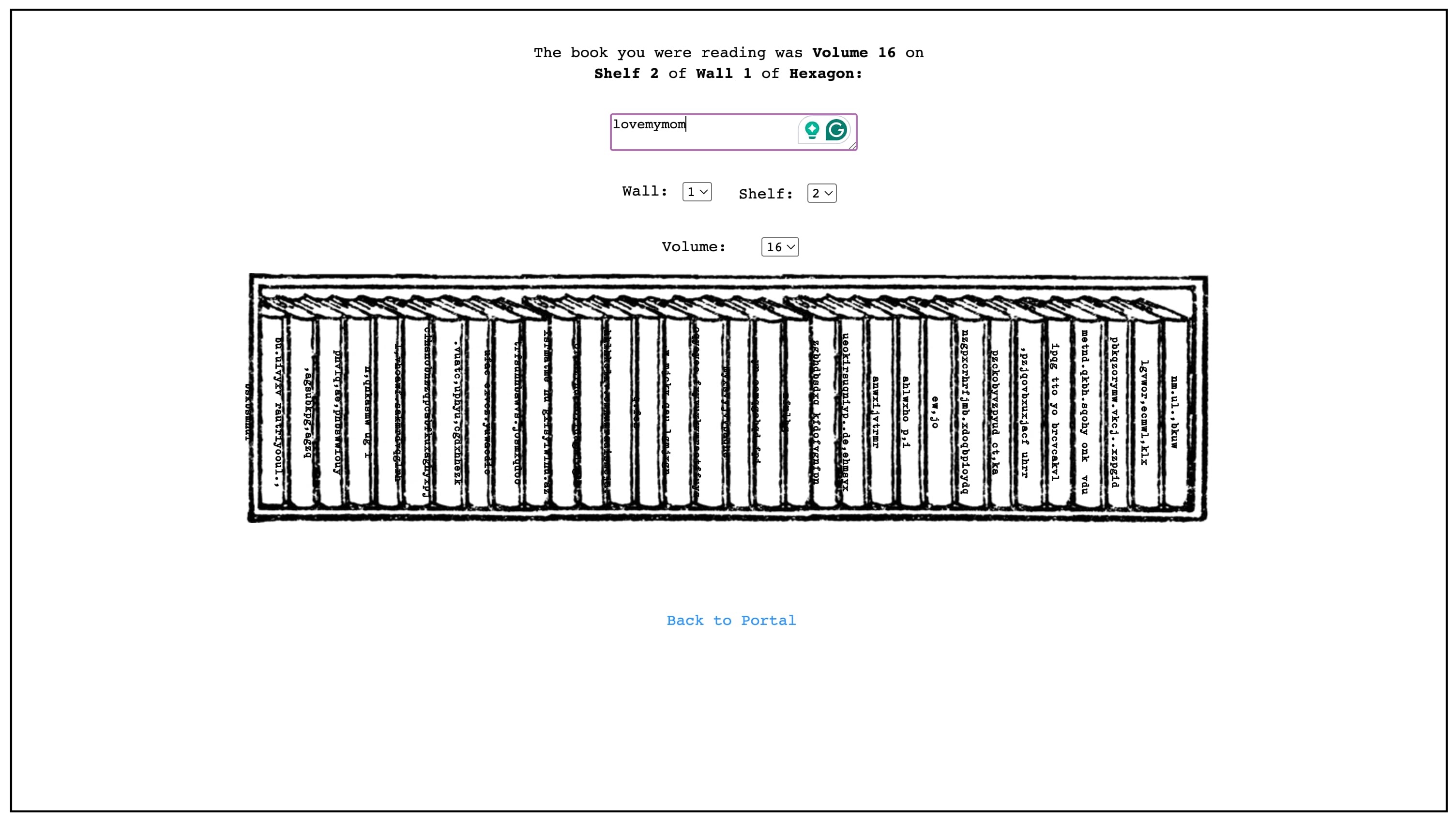 Although the literature is fictional, the creator was able to imagine and construct an interpretation of what such a library could be in the digital space. By using syntax, the creator designed a system where all possible combinations are generated and accessible. I found the concept of "discovery" particularly interesting here. Someone mentioned that if one had the time to browse through all these combinations in their lifetime (which is realistically impossible), they might even uncover the world’s deepest secrets.