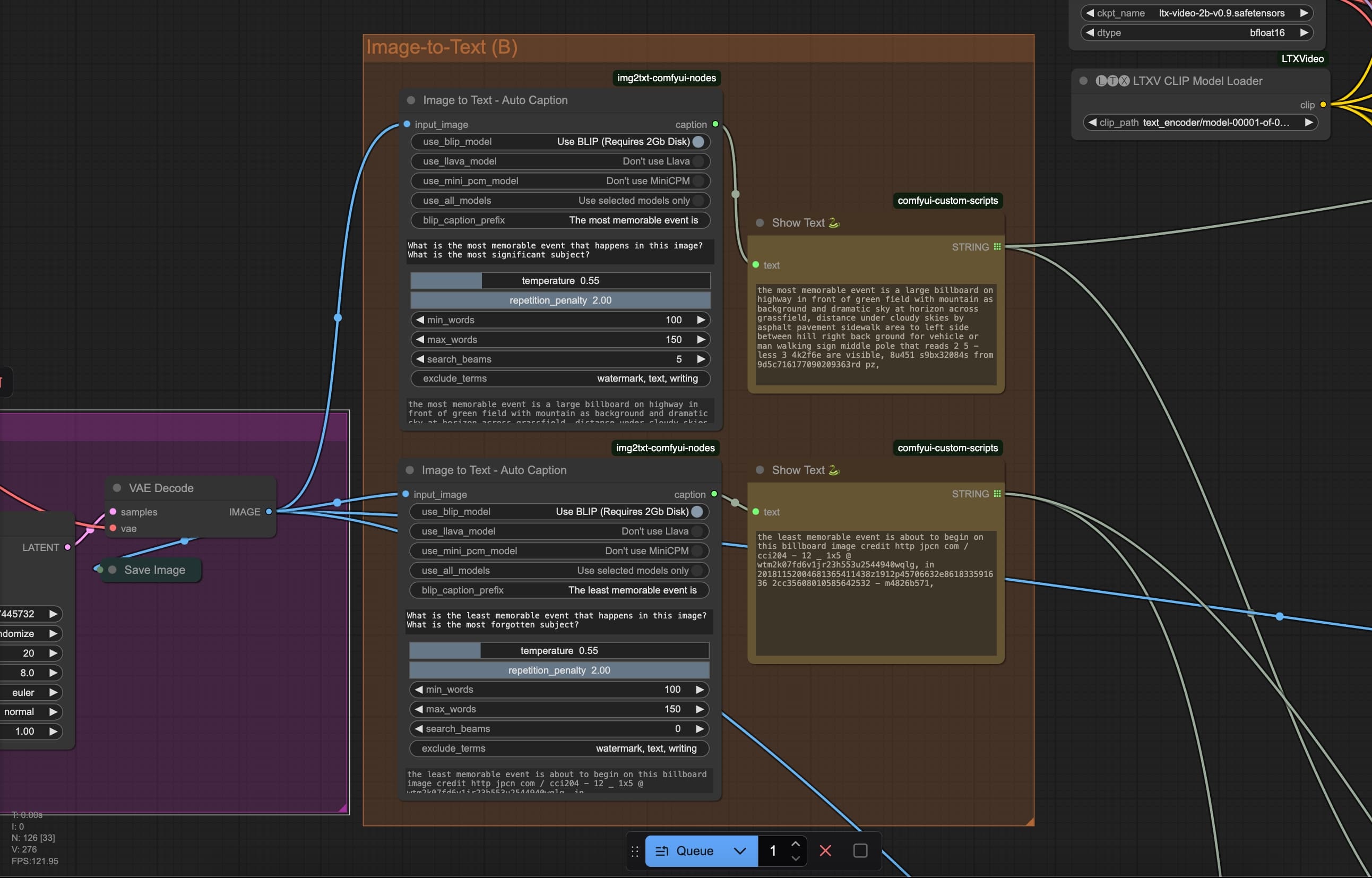 Therefore, I decided to tweak my workflow again. This time, instead of generating the videos from the images, I decided to input the generated text from the images and passed it as strings for prompts to generate videos. It seems like a better way to achieve the quality I am aiming for.