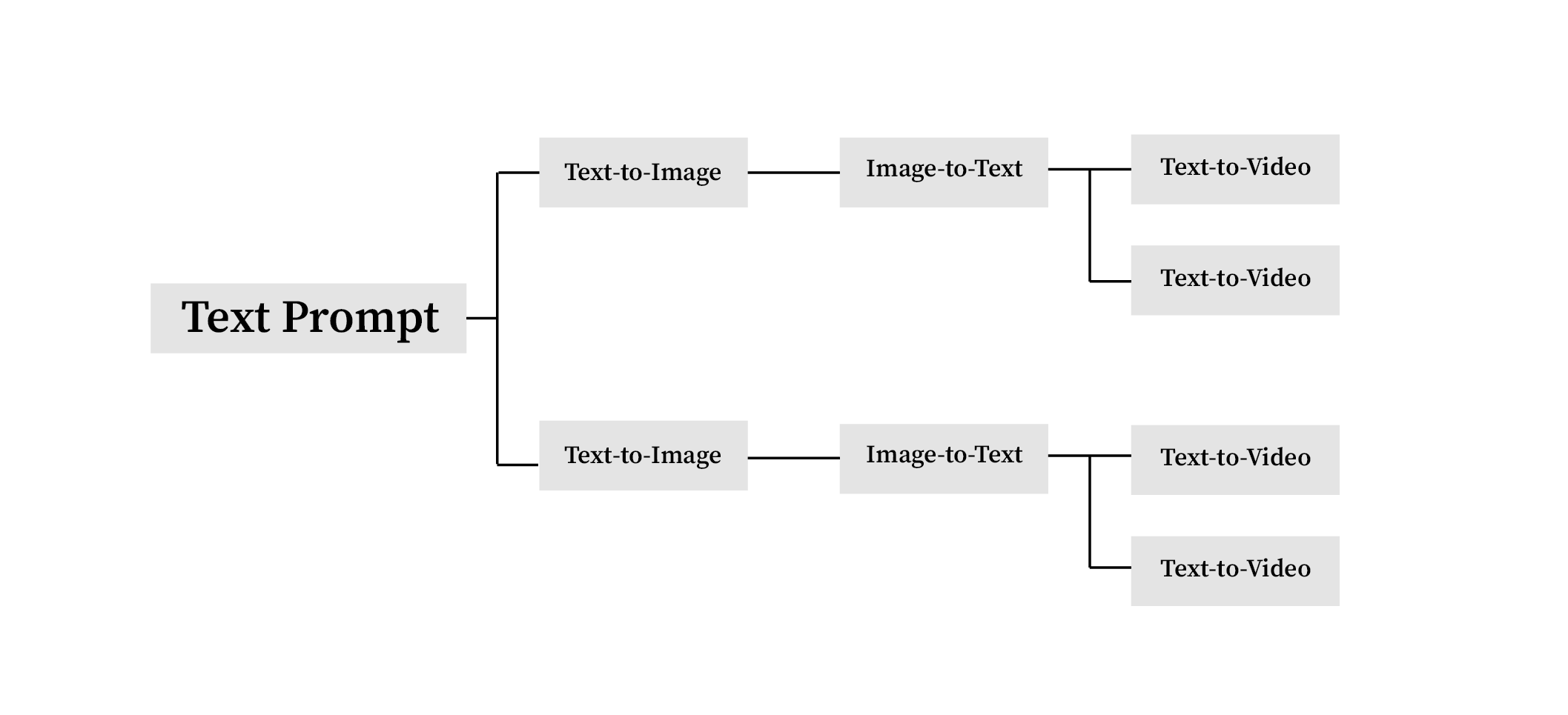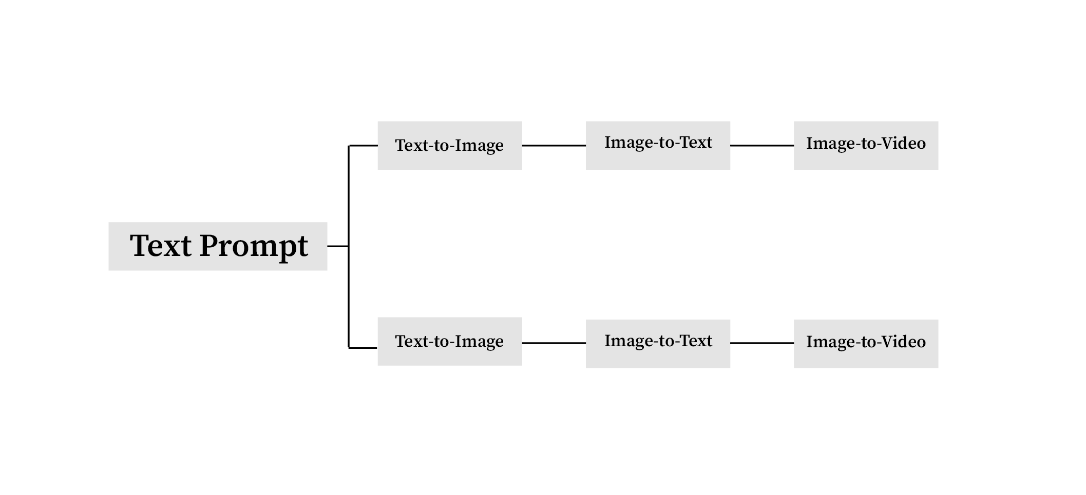 I believe showcasing the flow and thought process behind the outcomes is just as important as the visual results. The primary focus of this project would be to design a generative structure that automates the text-to-video process—essentially simplifying the complexities of how humans write into something machines can interpret. Rather than striving for a “perfect” AI-generated result, my goal is to create visual outputs that reflect the fragmented and imperfect nature of the prompts. By embracing the flaws and unexpected elements produced by the machine, it could be a way to humanize the generative process.