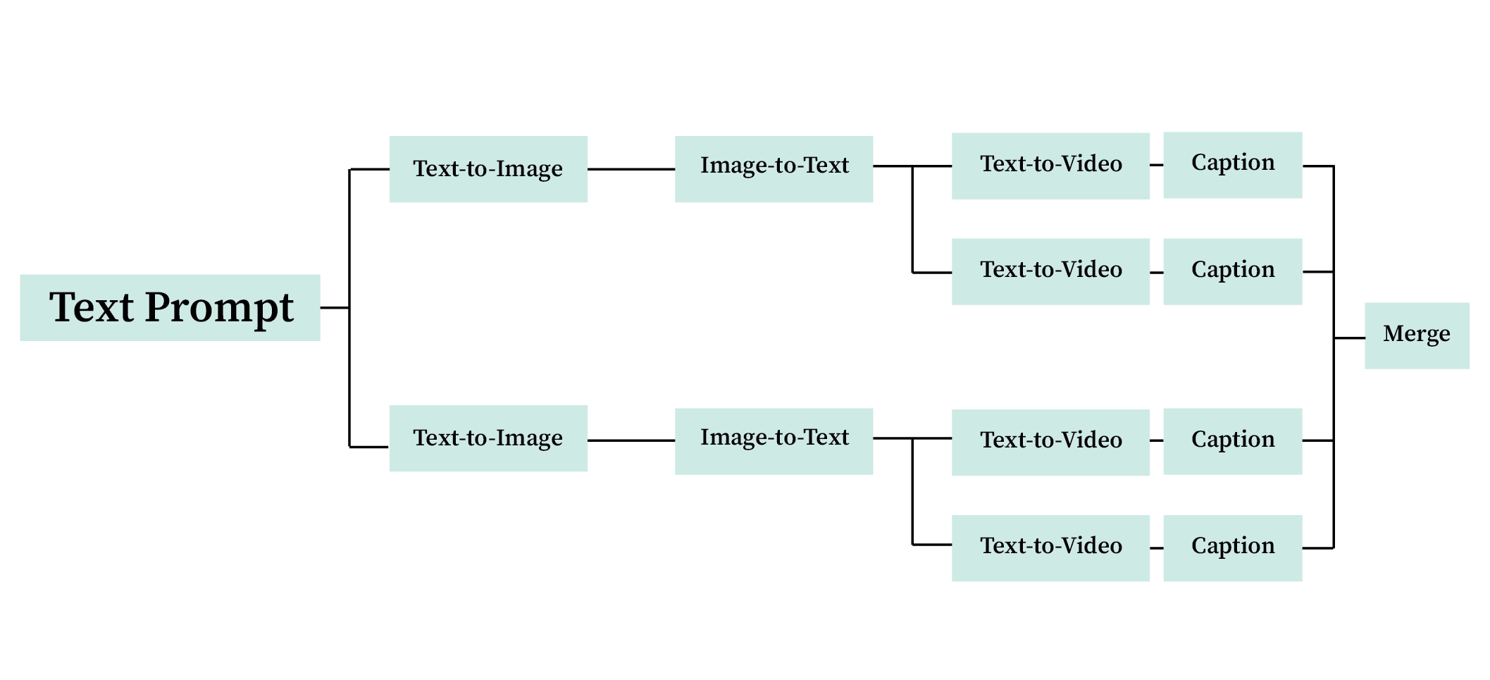 In this experiment, I tried to generate videos using the existing images that have been generated from the first layer image generation process. With the texts generated from captioning the images, I used them as guidance to generate videos. As seen from the results, I realized that the visual outputs generated has not so good qualities when compared to the videos generated from text directly.