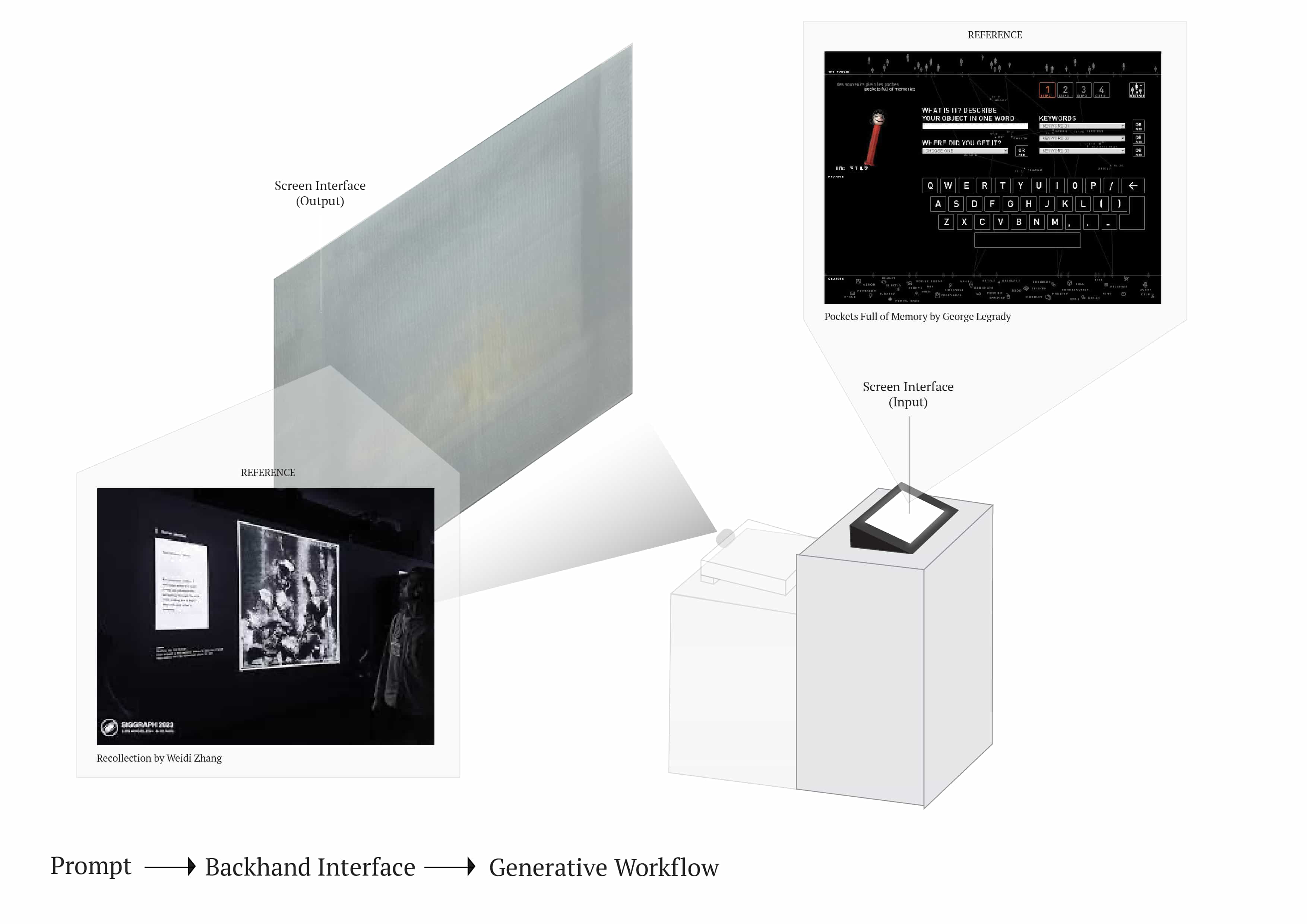 The main installation would be my challenge to make the generative workflow that I built to be interactive, meaning people can input their own words and the main will transform it into visuals during live-time.